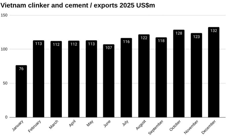 Vietnam exports of clinker and cement in December, US$m