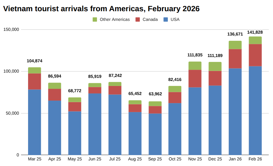 TABLE: Vietnam tourist arrivals from the Americas, February 2026