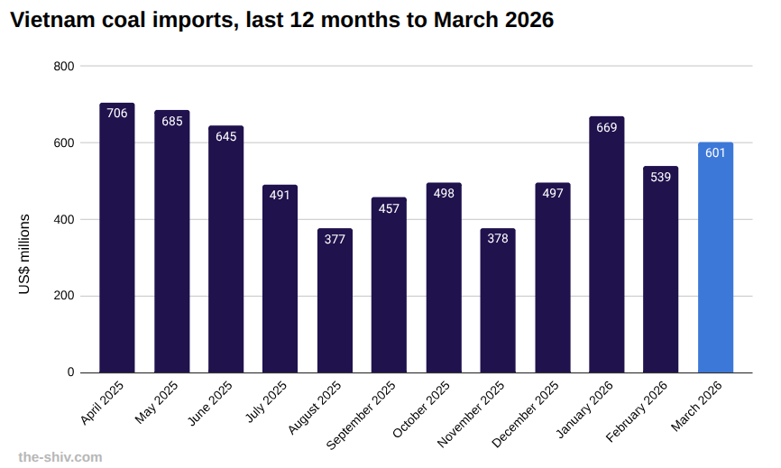 Vietnam imports of coal in March, 2026 US$m