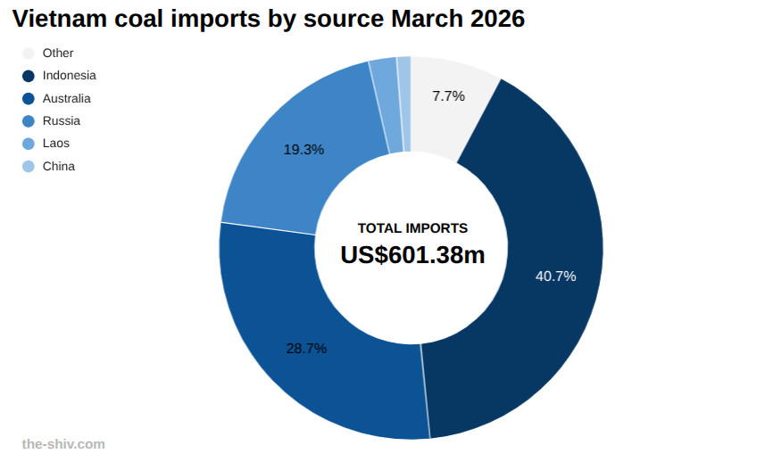 Year to date, Vietnam has imported US$1,810 million worth of coal, with supply led by major regional exporters.