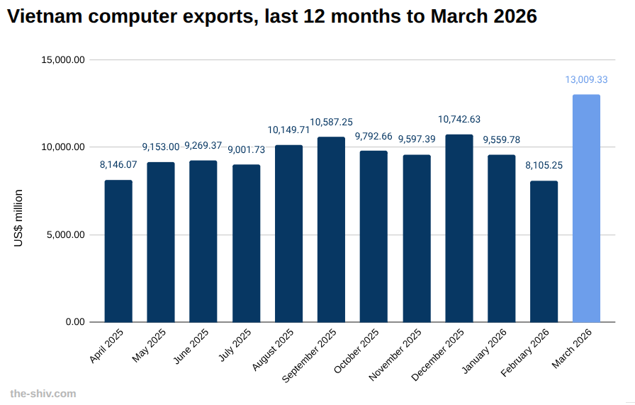 Vietnam exports of computer in March, 2026 US$m