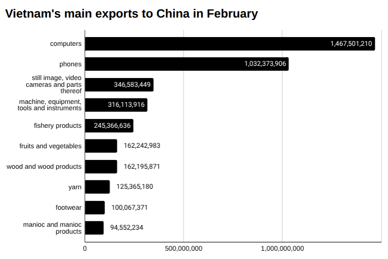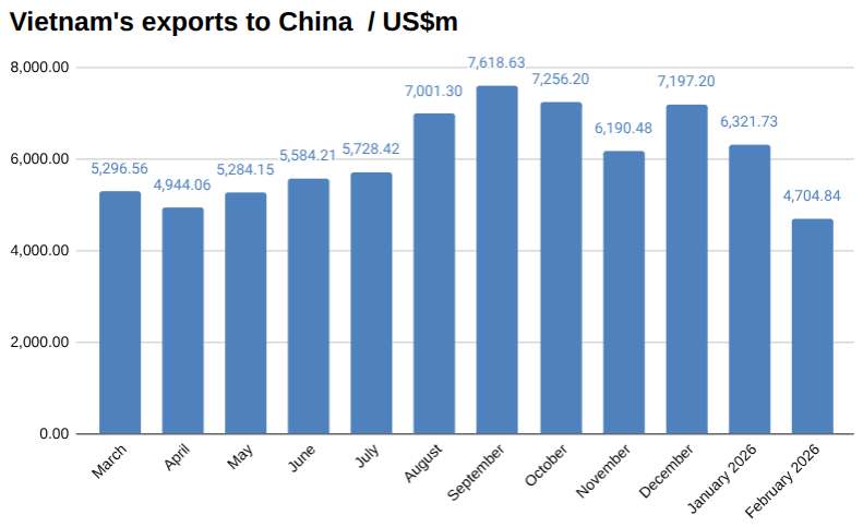 Vietnam exports to China in February 2026 US$m
