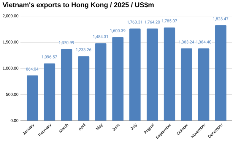 Vietnam exports to Hong Kong in December US$m