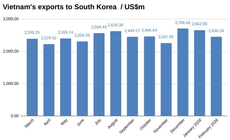 Vietnam exports to South Korea in February 2026 US$m
