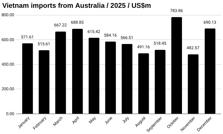 Vietnam imports from Australia in December US$m
