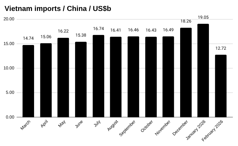 Vietnam imports from China in February US$m