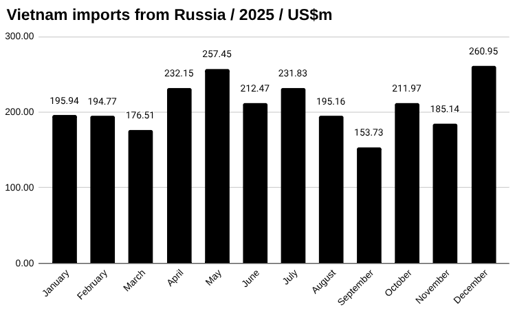 Vietnam imports from Russia in December US$m