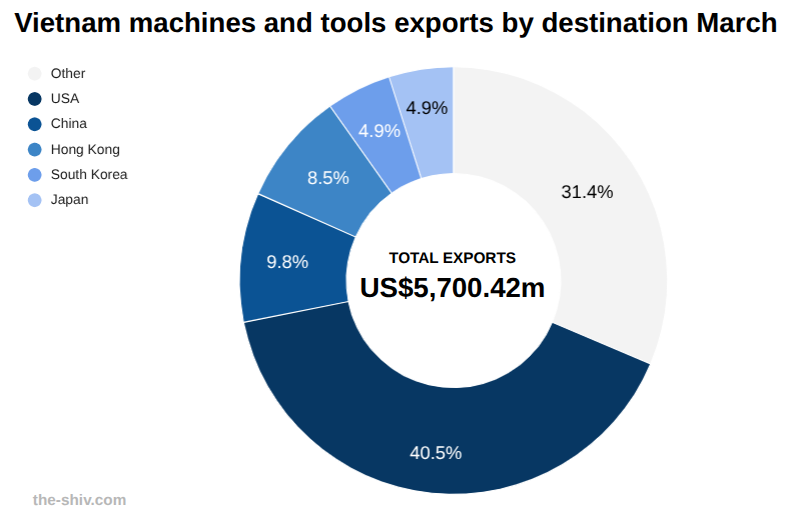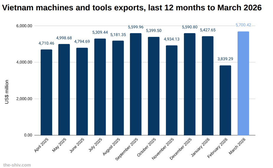 Vietnam exports of machines and tools in March, 2026 US$m