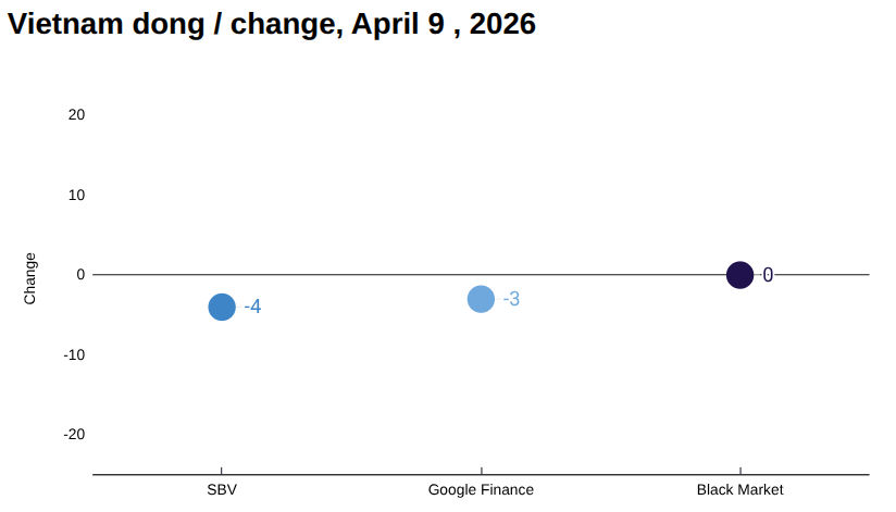 On April 9, in Vietnam, the black market US dollar buy rate was VND 26,910, and the sell rate was VND 26,960, a change of 0 and 0, respectively, for a mid-market rate of VND 26,935 (down 0.00 percent), according to prices quoted by Ty Gia USD. Read the full article →