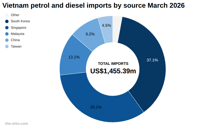 Vietnam imported petrol and diesel to the tune of US$1,455 million in March, up from US$721 million in February, a change of 101.92 percent, according to preliminary data from Vietnam’s General Department of Customs. Read the full article →