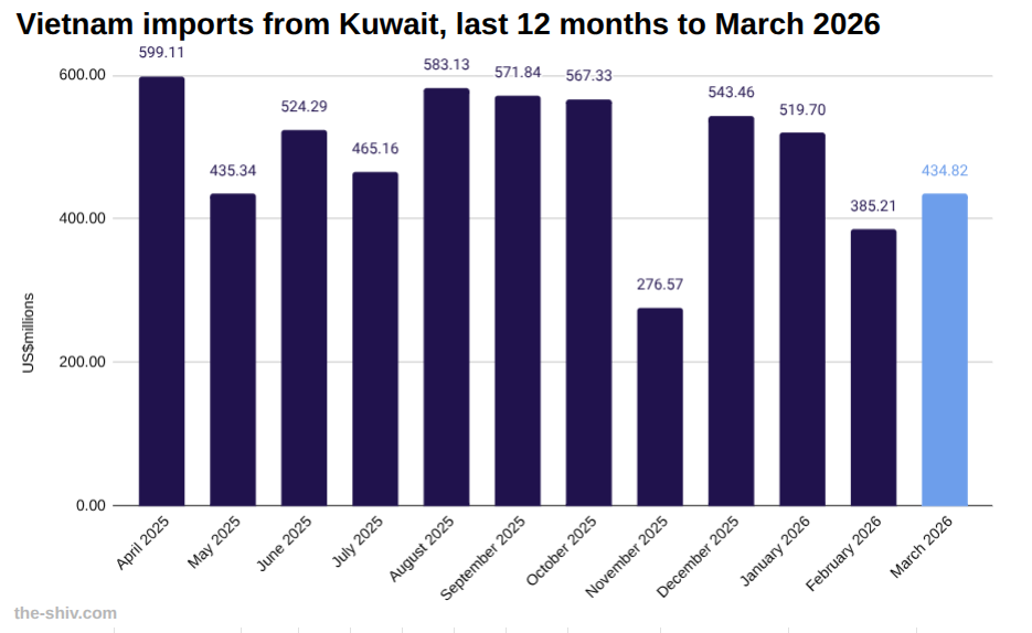 In March, Vietnam imported US$434.82 million worth of goods from Kuwait, up from US$385.21 million in February, a change of 12.88 percent, according to preliminary data from Vietnam’s General Department of Customs. Read the full article →