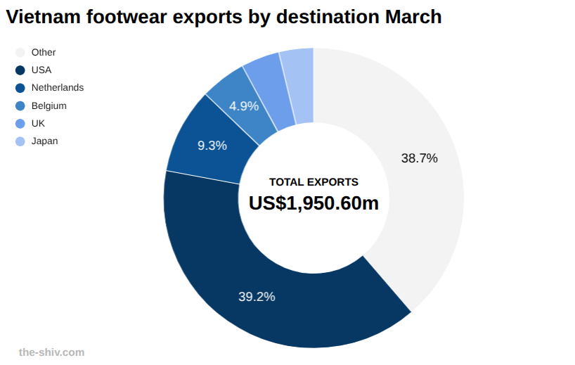 Vietnam exported footwear to the tune of US$1,951 million in March, up from US$1,414 million in February, a change of 37.99 percent, according to preliminary data from Vietnam’s General Department of Customs. Read the full article →