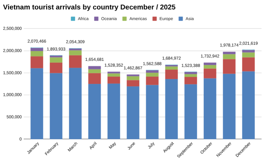 Vietnam tourist arrivals by country December / 2025