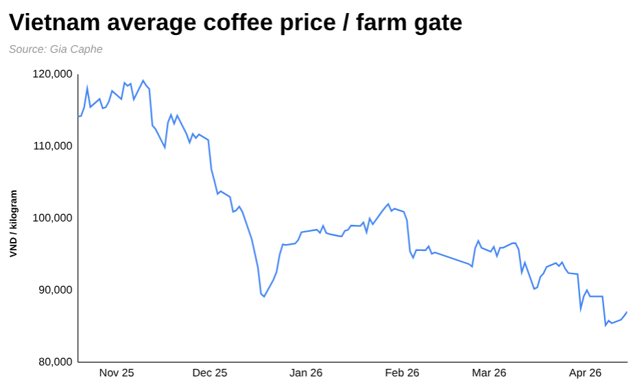 Vietnamese coffee prices have been sliding for months now, down roughly 40 percent since April last year. For traders and farmers holding on to their beans in the hopes of higher prices, their woes are now being compounded by input costs driven higher by the war in Iran.