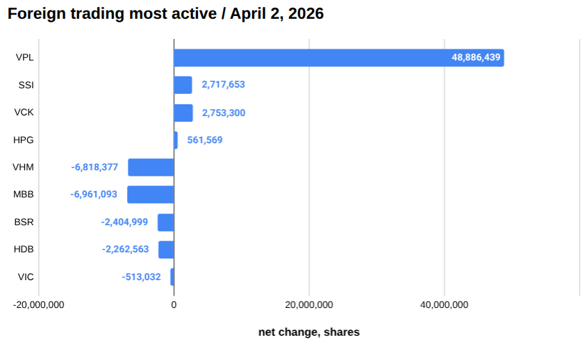 Most traded Vietnam stocks April 2, 2026