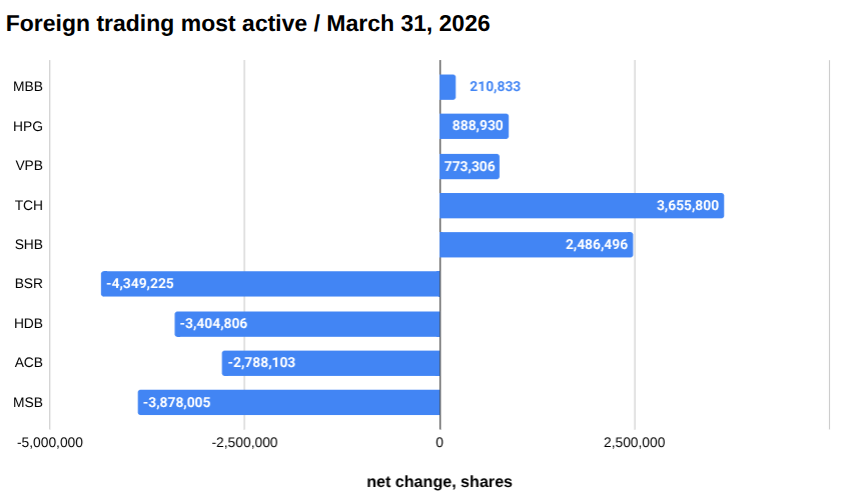 Most bought by foreign traders March 31, 2026