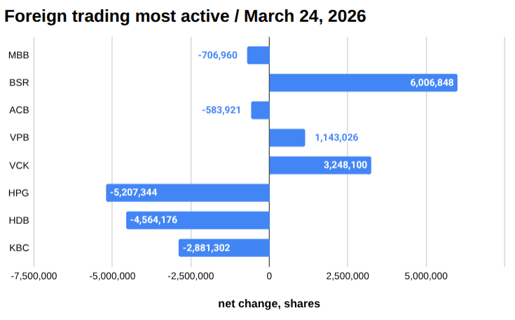Most sold by foreign traders, March 24, 2026